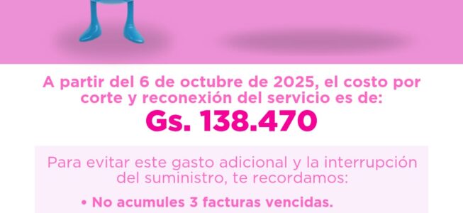 La Empresa de Servicios Sanitarios del Paraguay S.A. (ESSAP) comunica a la ciudadanía que, mediante la Resolución N.º 01 del Ente Regulador de Servicios Sanitarios (ERSSAN), de fecha 15 de setiembre de 2025, se ha aprobado la actualización de las tarifas correspondientes a prestaciones y servicios vinculados a la provisión de agua potable y alcantarillado […]