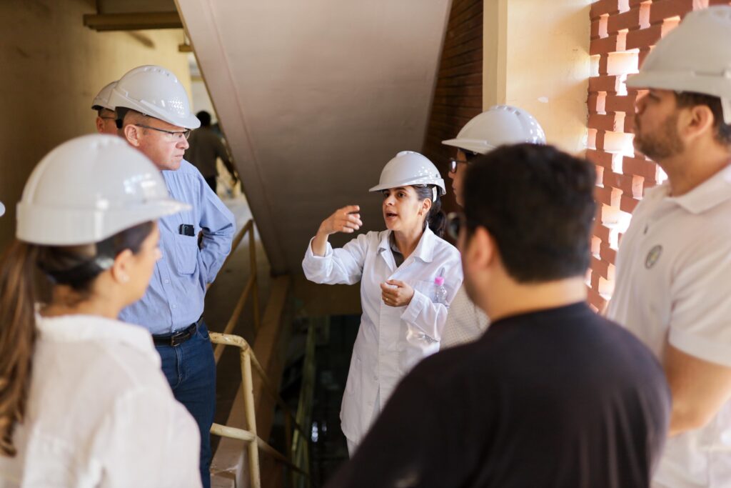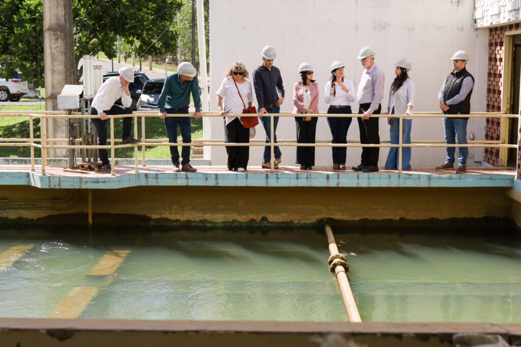 Durante la jornada, las autoridades realizaron un recorrido por la Planta de Tratamiento de Agua Potable de Viñas Cué, con el objetivo de conocer de cerca el proceso de potabilización y distribución que abastece a gran parte del área metropolitana de Asunción.