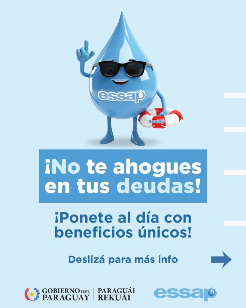 Con esta campaña, la ESSAP S.A. brinda a sus usuarios facilidades y flexibilidad para regularizar la deuda de un servicio esencial como el agua potable y el saneamiento sanitario, acompañando el esfuerzo de las familias paraguayas y garantizando la continuidad del servicio.