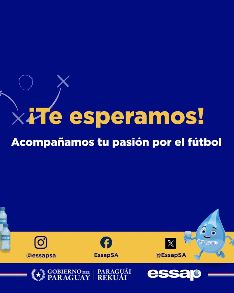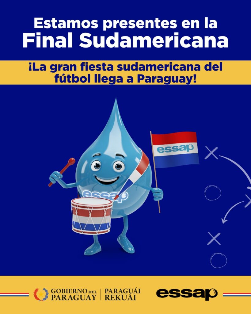 La Empresa de Servicios Sanitarios del Paraguay S.A. (ESSAP) se suma al despliegue organizado para la final de la CONMEBOL Sudamericana, que se disputará este sábado 22 de noviembre en el Estadio Defensores del Chaco, con un operativo especial de hidratación y apoyo logístico para los asistentes nacionales y extranjeros a partir de hoy hasta el domingo.