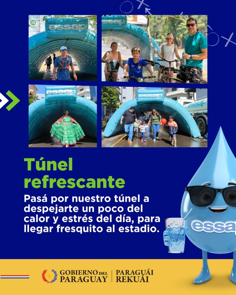 En el marco de este evento deportivo internacional, la ESSAP dispondrá de puestos de hidratación, camiones cisterna, túneles de hidratación y lockers de recarga para celulares con wifi gratuito, acompañando la llegada de miles de visitantes al país.